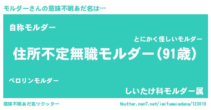| 男性向けラノベタイトル風あだ名 | 『モルダーに滅ぼされるだけの簡単なお仕事です』 |