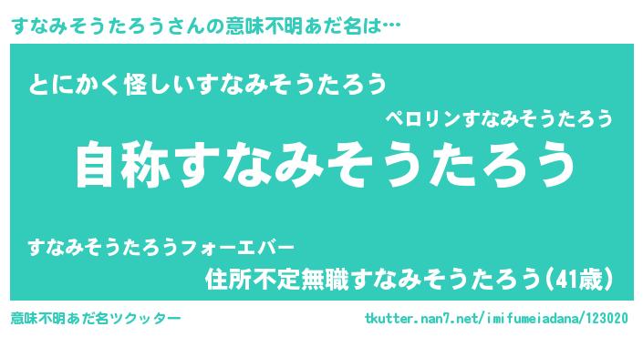 | 胡散臭い通販商品みたいなあだ名 | 『テレビで話題の高麗人参…その名も「すなみそうたろう」』 |