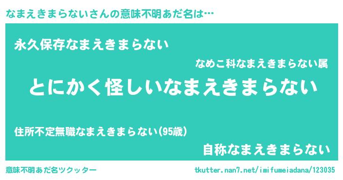 | 胡散臭い通販商品みたいなあだ名 | 『信頼と実績のサプリメント…その名も「なまえきまらない」』 |