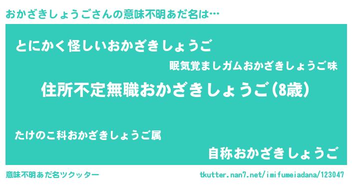 | 男性向けラノベタイトル風あだ名 | 『この素晴らしい世界におかざきしょうごを!』 |