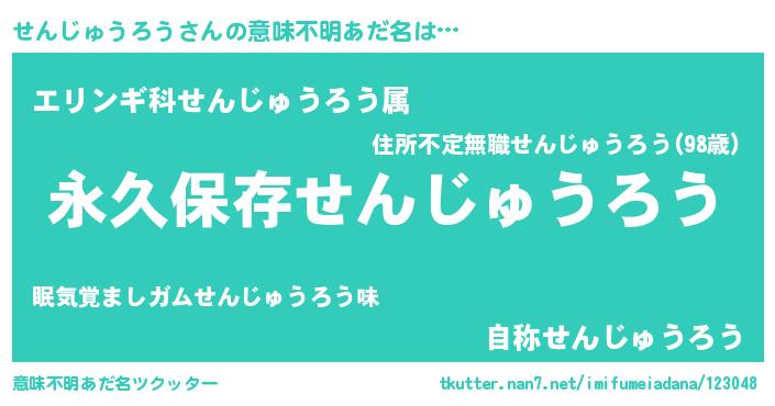 | 恥ずかしいあだ名 | 『せんちん』『センジュウロウデラックス』 |
