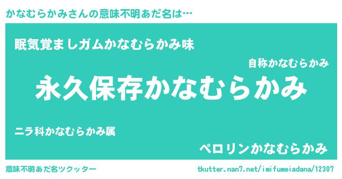 | 胡散臭い通販商品みたいなあだ名 | 『絶対に幸福をもたらす水素水…その名も「かなむらかみ」』 |