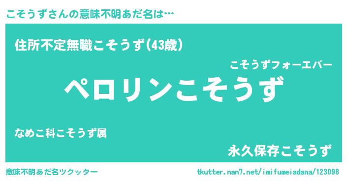 | 胡散臭い通販商品みたいなあだ名 | 『億万長者になれるブレスレット…その名も「こそうず」』 |