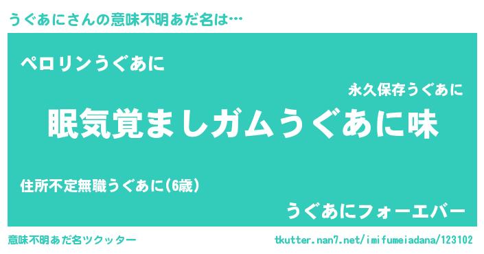 | 欧米人風あだ名 | 『ダニエルうぐあに』『マイケルうぐあに』 |