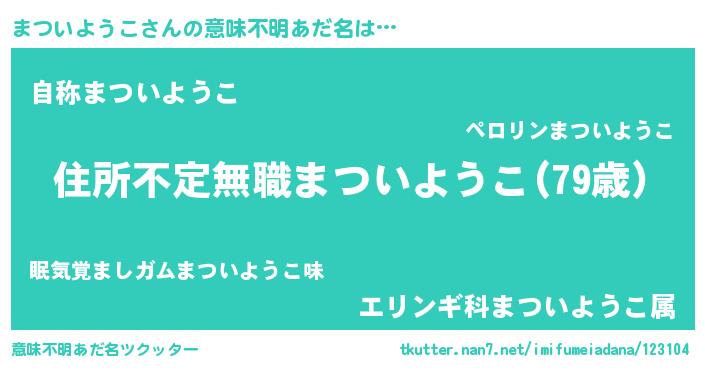 | 女子向けラノベタイトル風あだ名 | 『乙女ゲームの破滅フラグしかない悪役まついようこに転生してしまった…』 |