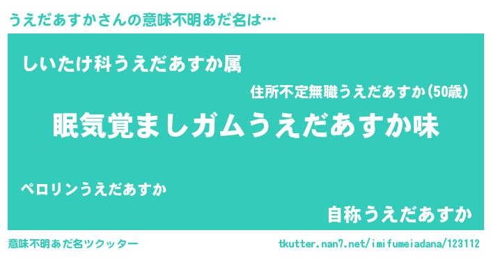 | 胡散臭い通販商品みたいなあだ名 | 『100人中100人が認めたマグネット磁石…その名も「うえだあすか」』 |