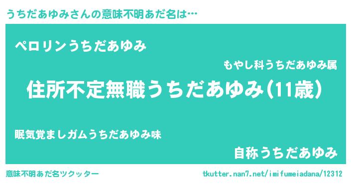 | 恥ずかしいあだ名 | 『プリティーうちだあゆみ』『うちっちょ』 |