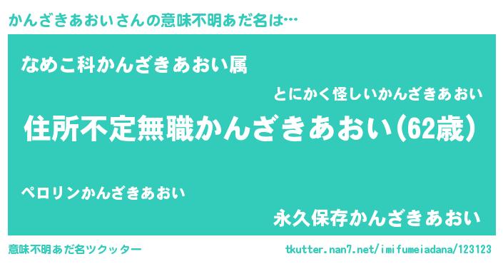 | ヘコむあだ名 | 『かんざきあおい(爆)』『かんを』 |