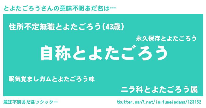 | 女子向けラノベタイトル風あだ名 | 『とよたごろうなんてお断りですっ。』 |