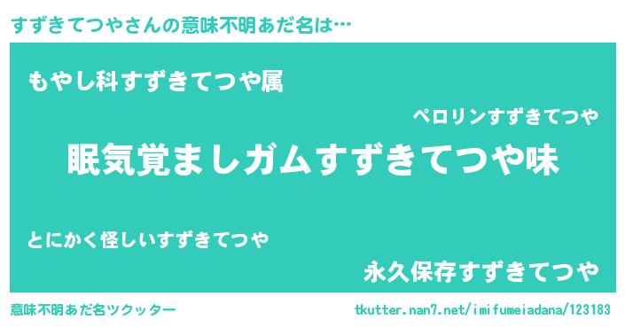 | ヘコむあだ名 | 『すずきてつや(笑)』『すずにゅー』 |