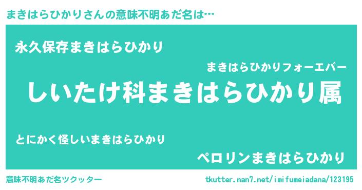 | 胡散臭い通販商品みたいなあだ名 | 『絶対に幸福をもたらす水素水…その名も「まきはらひかり」』 |