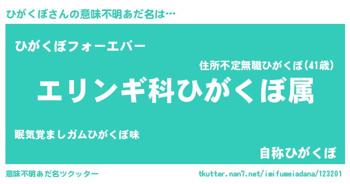 | ヒーロー風カッコイイあだ名 | 『ウルトラひがくぼマン』『仮面ヒガダー』 |