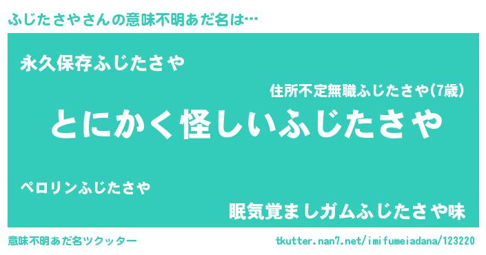 | 男性向けラノベタイトル風あだ名 | 『ふじたさやの嫁は女の子じゃないと思った?』 |