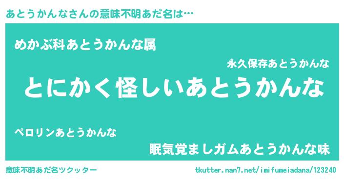 | 胡散臭い通販商品みたいなあだ名 | 『信頼と実績のペンダント…その名も「あとうかんな」』 |