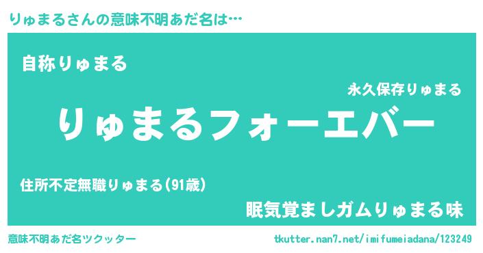 | ヒーロー風カッコイイあだ名 | 『ウルトラりゅまるマン』『ネオリュマル』 |