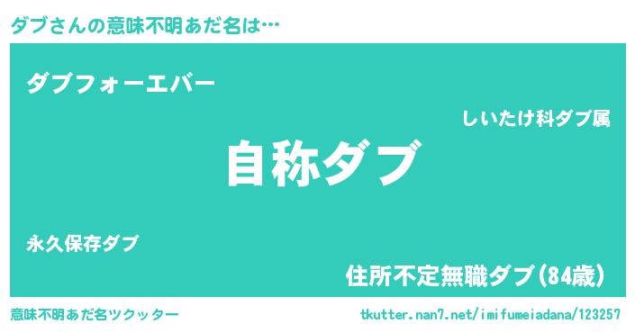 | ヒーロー風カッコイイあだ名 | 『最強戦士ダブ』『ウルトラダブマン』 |