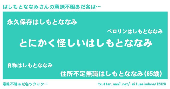 | 男性向けラノベタイトル風あだ名 | 『ダンジョンにはしもとななみを求めるのは間違っているだろうか』 |