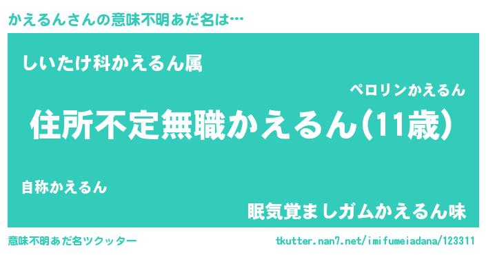 | 男性向けラノベタイトル風あだ名 | 『はたらくかえるんさま!』 |
