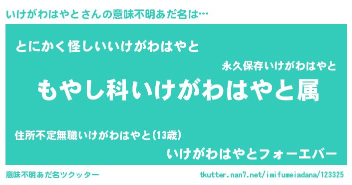 | 胡散臭い通販商品みたいなあだ名 | 『伝統あるサプリメント…その名も「いけがわはやと」』 |
