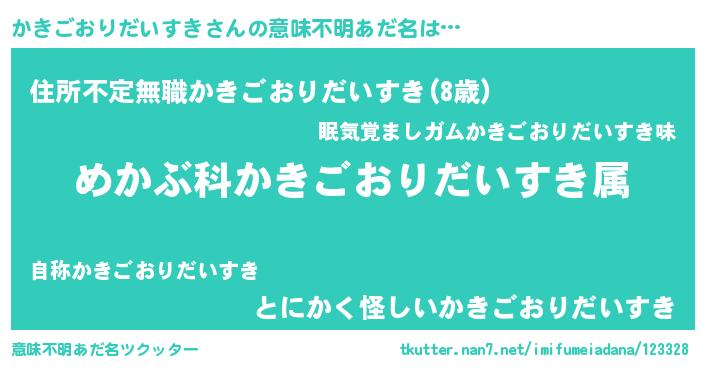 | 伝説のあだ名 | 『孤高の遊び人かきごおりだいすき』 |