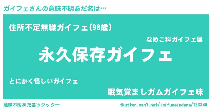 | 男性向けラノベタイトル風あだ名 | 『ガイフェという概念が存在しない退屈な世界 』 |