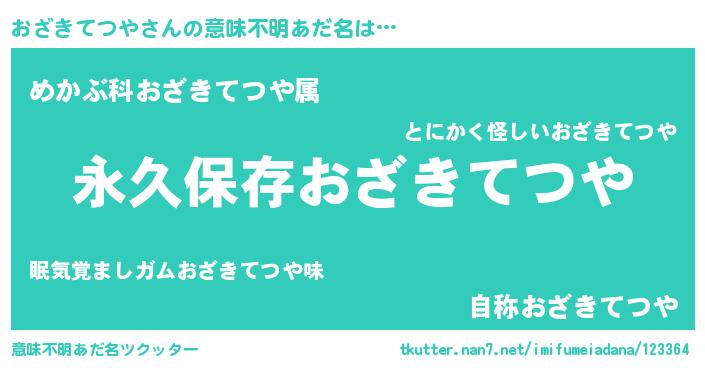 | ヘコむあだ名 | 『おざきてつや(苦笑)』『おざぷりん』 |