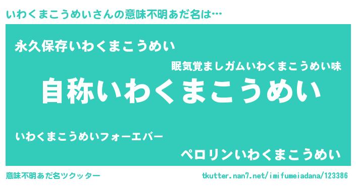 | ヘコむあだ名 | 『いわくまこうめい(苦笑)』『いわにー』 |