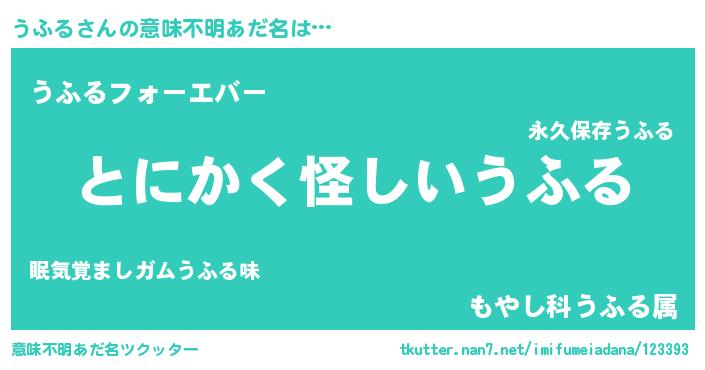 | 女子向けラノベタイトル風あだ名 | 『うふるは平凡を望む』 |