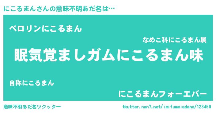 | 男性向けラノベタイトル風あだ名 | 『うちのにこるまんが世界を掌握している!』 |