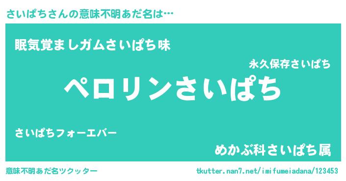 | 男性向けラノベタイトル風あだ名 | 『さいぱちの憂鬱』 |