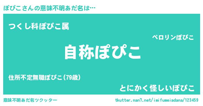 | 男性向けラノベタイトル風あだ名 | 『魔法科高校のぽぴこ』『ぽぴこの憂鬱』 |