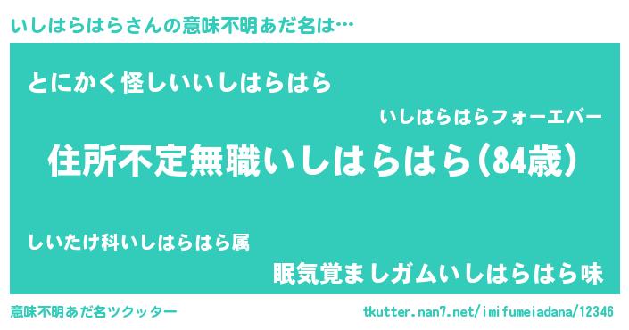 | 男性向けラノベタイトル風あだ名 | 『この素晴らしい世界にいしはらはらを!』 |