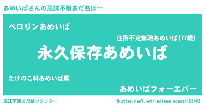 | ヘコむあだ名 | 『あめいば(笑)』『あめにー』 |