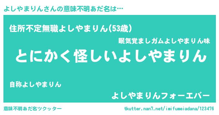 | 男性向けラノベタイトル風あだ名 | 『よしやまりんの嫁は女の子じゃないと思った?』 |
