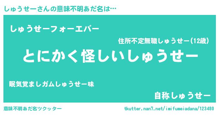 | ヒーロー風カッコイイあだ名 | 『暗黒騎士シュ』『最強戦士シュウセー』 |