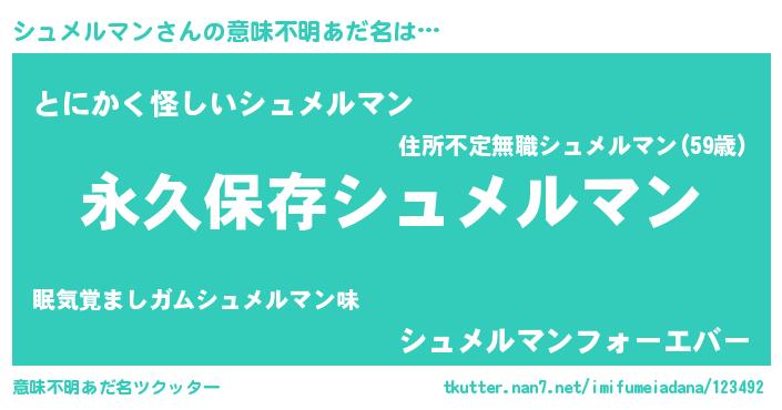 | 男性向けラノベタイトル風あだ名 | 『シュメルマンという概念が存在しない退屈な世界 』 |
