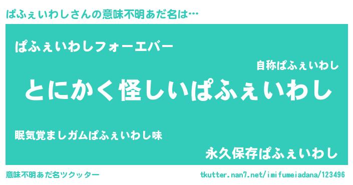 | 胡散臭い通販商品みたいなあだ名 | 『伝統あるサプリメント…その名も「ぱふぇいわし」』 |