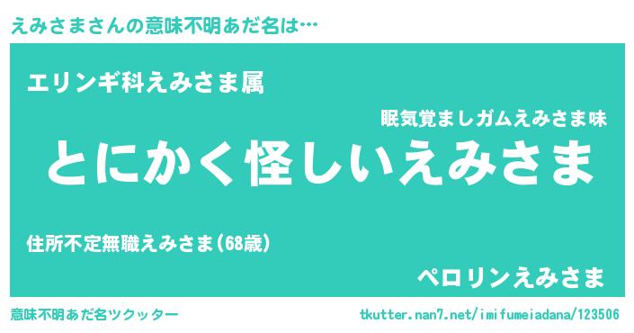 | 欧米人風あだ名 | 『ウサインえみさま』『マイケルえみさま』 |