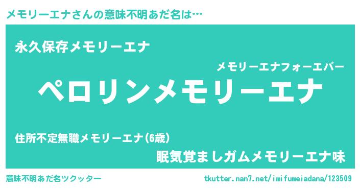 | 男性向けラノベタイトル風あだ名 | 『メモリーエナの憂鬱』 |