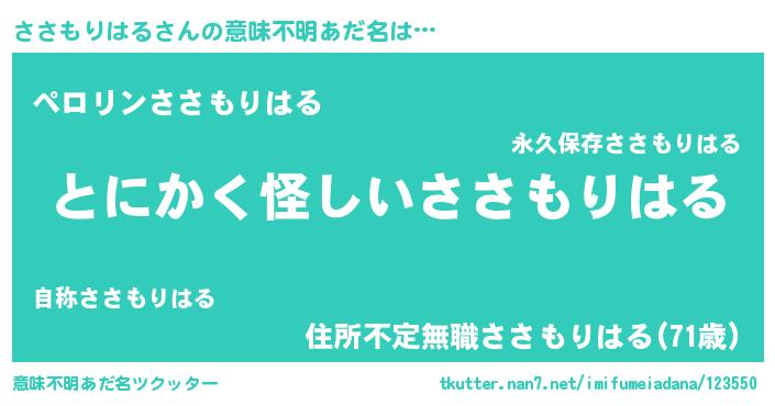 | 胡散臭い通販商品みたいなあだ名 | 『信頼と実績のネックレス…その名も「ささもりはる」』 |