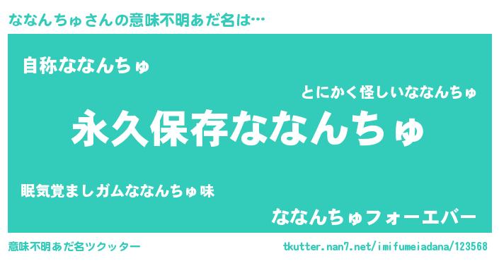 | ヒーロー風カッコイイあだ名 | 『ネオナナンチュ』『魔戒騎士ナナ』 |