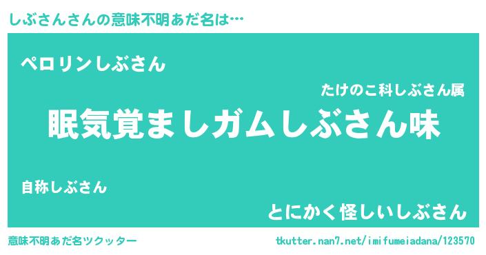 | 欧米人風あだ名 | 『ダニエルしぶさん』『マイケルしぶさん』 |