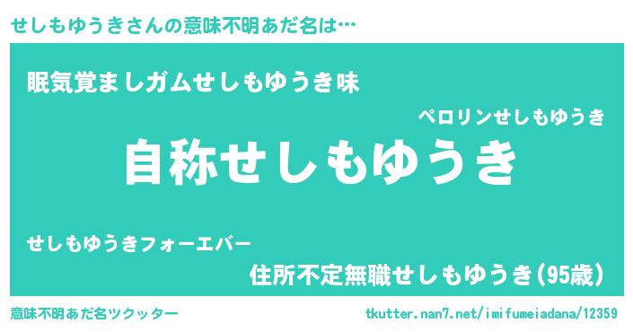 | 男性向けラノベタイトル風あだ名 | 『Re:せしもゆうきから始める異世界生活』 |