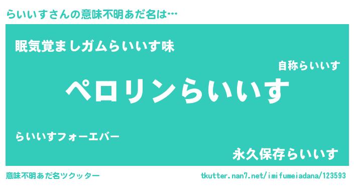 | 欧米人風あだ名 | 『マイケルらいいす』『ダニエルらいいす』 |
