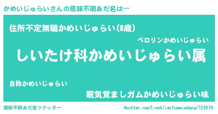 | 料理風あだ名 | 『かめいじゅらいごはん』 |