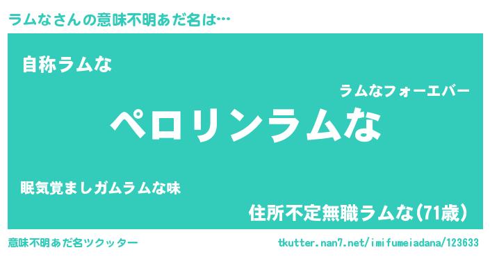 | 男性向けラノベタイトル風あだ名 | 『ラムナアートオンライン』 |
