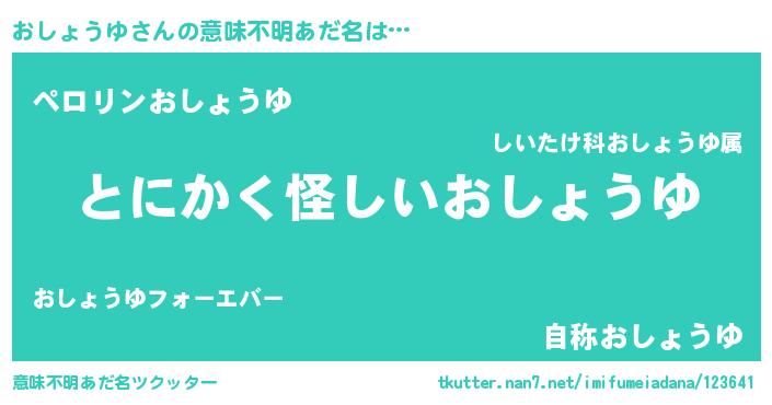 | 男性向けラノベタイトル風あだ名 | 『おしょうゆに滅ぼされるだけの簡単なお仕事です』 |