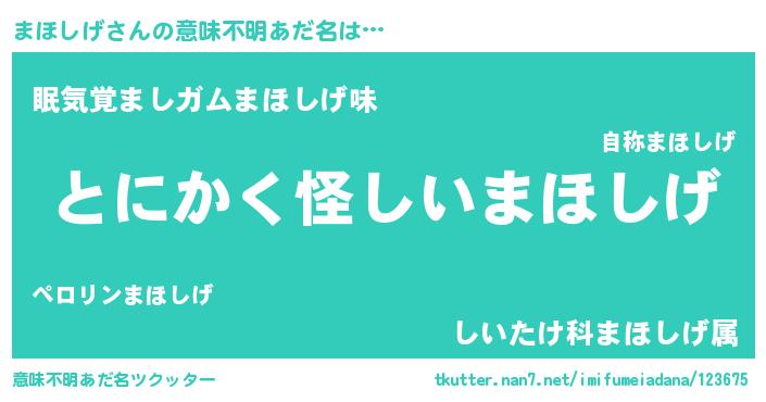 | 胡散臭い通販商品みたいなあだ名 | 『信頼と実績のサプリメント…その名も「まほしげ」』 |