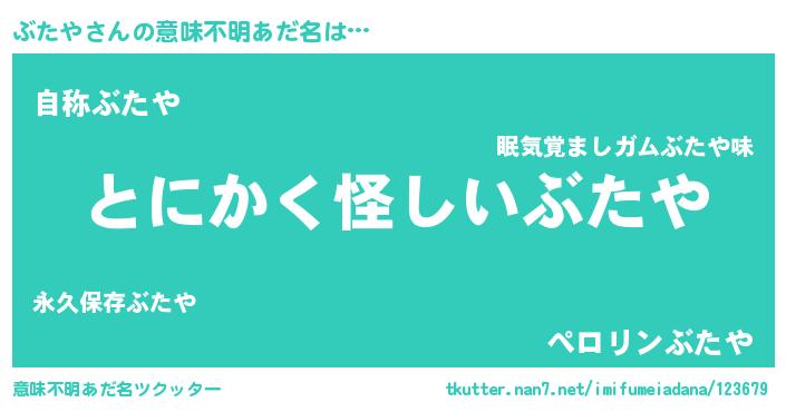 | 女子向けラノベタイトル風あだ名 | 『ぶたやは平凡を望む』『闇のぶたや』 |