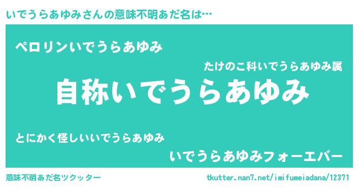 | 男性向けラノベタイトル風あだ名 | 『Re:いでうらあゆみから始める異世界生活』 |